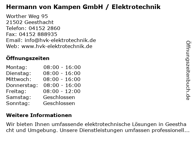 Branchen & Suchbegriffe zu Hermann von Kampen GmbH / Elektrotechnik:elektrotechnik, hermann, kampen, von |