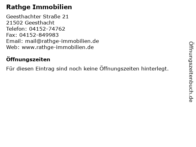 | Öffnungszeiten Rathge Immobilien in Geesthacht anzeigen | |