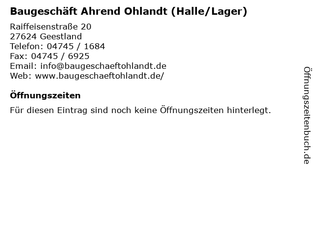 | Baugeschäft Ahrend Ohlandt (Halle/Lager) anrufen | |