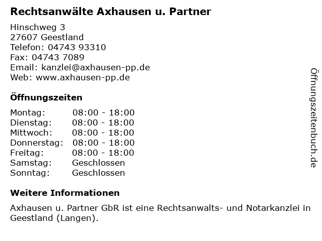 Branchen & Suchbegriffe zu Rechtsanwälte Axhausen u. Partner:axhausen, partner, rechtsanwälte, u. |