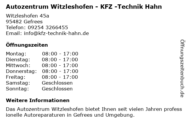 Branchen & Suchbegriffe zu Autozentrum Witzleshofen - KFZ -Technik Hahn:autozentrum, hahn, kfz, technik, witzleshofen |