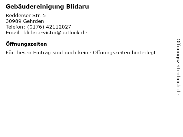 | Öffnungszeiten Gebäudereinigung Blidaru in Gehrden anzeigen | |