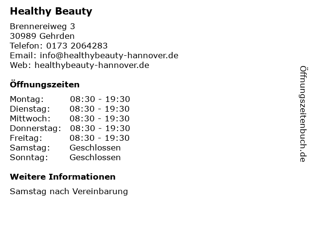 | Öffnungszeiten Healthy Beauty in Gehrden anzeigen | |