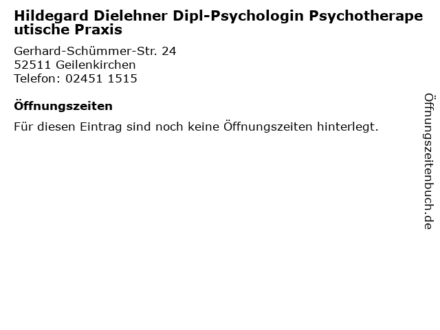 | Hildegard Dielehner Dipl-Psychologin Psychotherapeutische Praxis anrufen | |