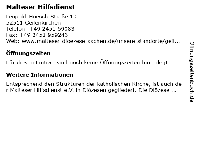 | Öffnungszeiten Malteser Hilfsdienst in Geilenkirchen anzeigen | |
