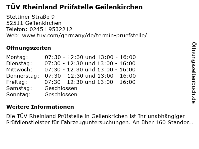 Branchen & Suchbegriffe zu TÜV Rheinland Prüfstelle Geilenkirchen:prüfstelle, rheinland, tüv |