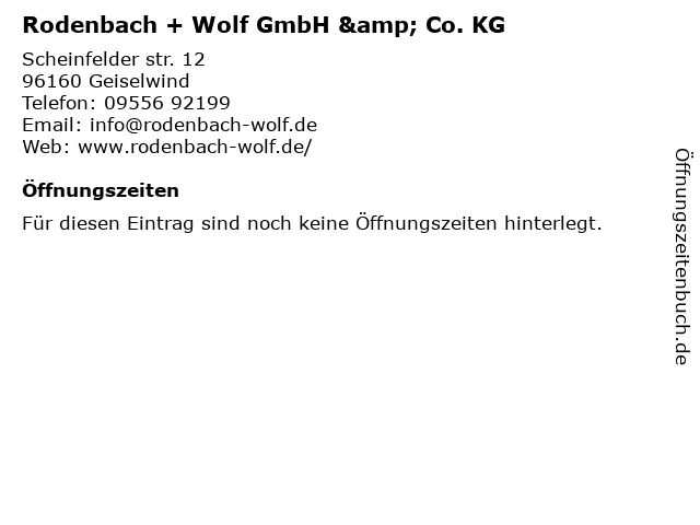 | Rodenbach + Wolf GmbH & Co. KG anrufen | |
