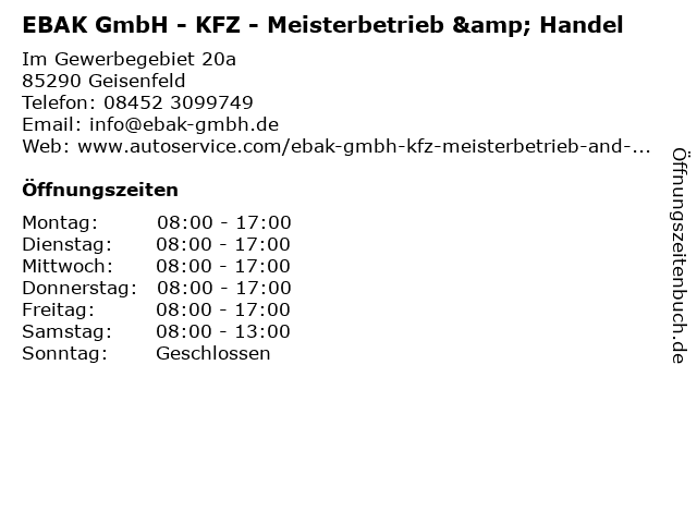 Branchen & Suchbegriffe zu EBAK GmbH - KFZ - Meisterbetrieb & Handel:ebak, handel, kfz, meisterbetrieb |