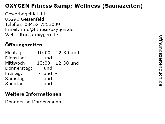 Branchen & Suchbegriffe zu OXYGEN Fitness & Wellness (Saunazeiten):dampfsauna, entspannung, fitness, gesundheit, oxygen, sauna, saunazeiten, trockensauna, wellness |