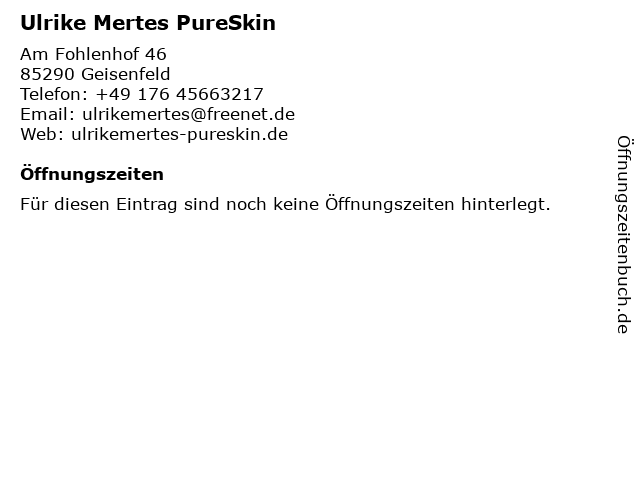 | Telefonnummer Ulrike Mertes PureSkin in Geisenfeld (+49 176 45663217) anrufen | |