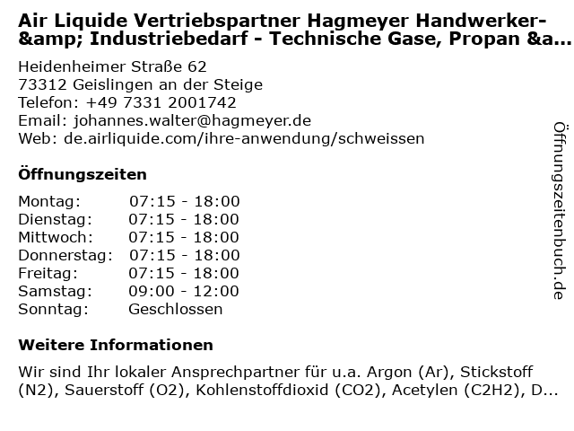 3 Hagmeyer Handwerker- und Industriebedarf (Ladengeschäft) (Entfernung: 0,02 km) Heidenheimer Str. 62, 73312 Geislingen 4 Hagmeyer Handwerker und Industriebedarf GmbH Zentrale (Entfernung: 0,02 km) Heidenheimer Str. 62, 73312 Geislingen 5 Beck & Co Industriebedarf - Geislingen Verkaufsbüro - Bürozeiten (Entfernung: 0,17 km) Karl-Benz-Straße 6, 73312 Geislingen an der Steige 6  |