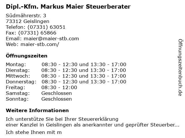 Branchen & Suchbegriffe zu Dipl.-Kfm. Markus Maier Steuerberater:beratung, betriebsübertragung, buchführung, dipl., dipl.-kfm., existenzgründerberatung, gewinnermittlung, jahresabschluss, kfm., lohnbuchhaltung, maier, markus, steuerberater, steuererklärungen |