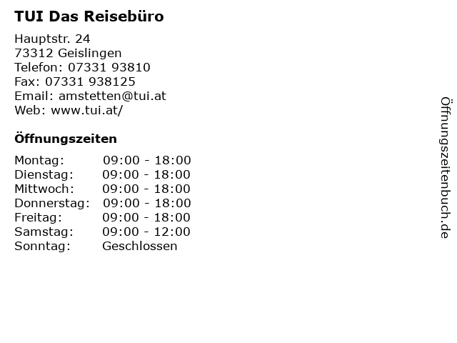 | Öffnungszeiten TUI Das Reisebüro in Geislingen anzeigen | |