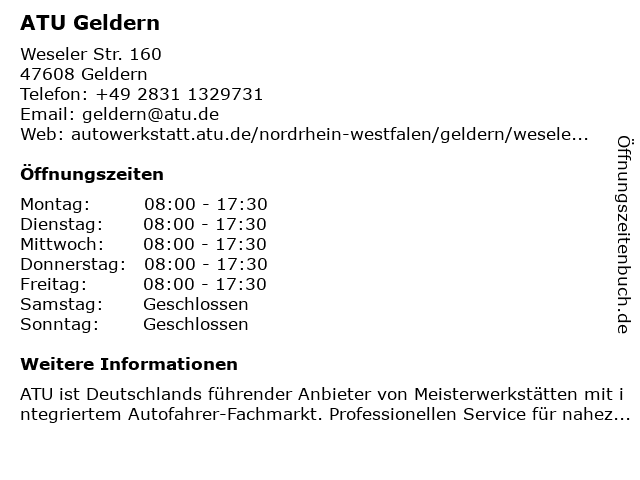 | Öffnungszeiten ATU Geldern in Geldern anzeigen | |