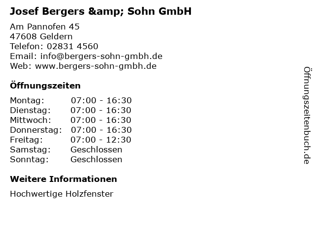 | Öffnungszeiten Josef Bergers & Sohn GmbH in Geldern anzeigen | |