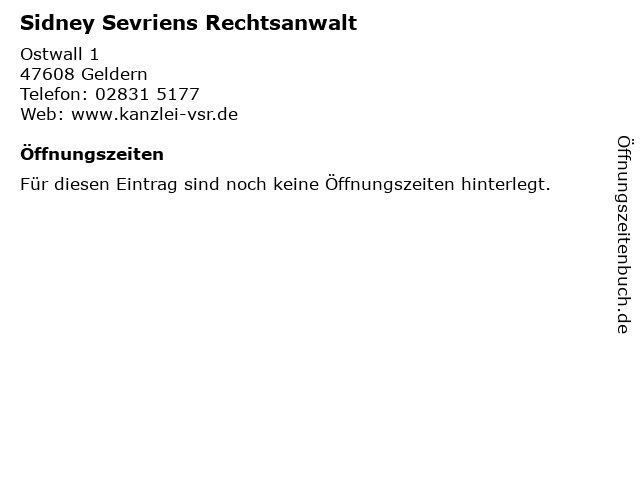 | Öffnungszeiten Sidney Sevriens Rechtsanwalt in Geldern anzeigen | |