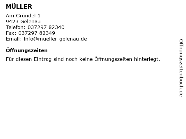 | Öffnungszeiten MÜLLER in Gelenau anzeigen | |