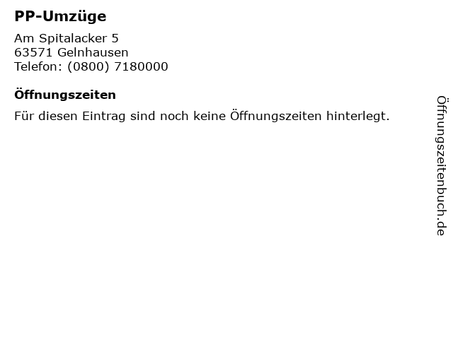 | Öffnungszeiten PP-Umzüge in Gelnhausen anzeigen | |