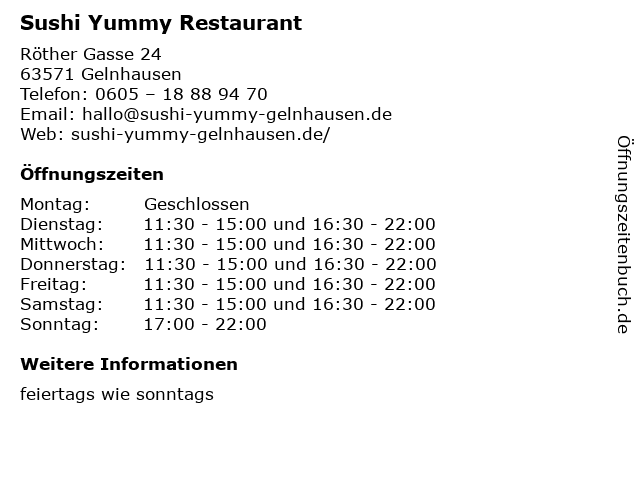 | Öffnungszeiten Sushi Yummy Restaurant in Gelnhausen anzeigen | |
