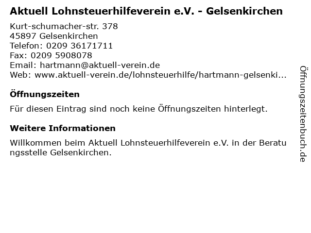Branchen & Suchbegriffe zu Aktuell Lohnsteuerhilfeverein e.V. - Gelsenkirchen:aktuell, e.v., lohnsteuerhilfeverein |