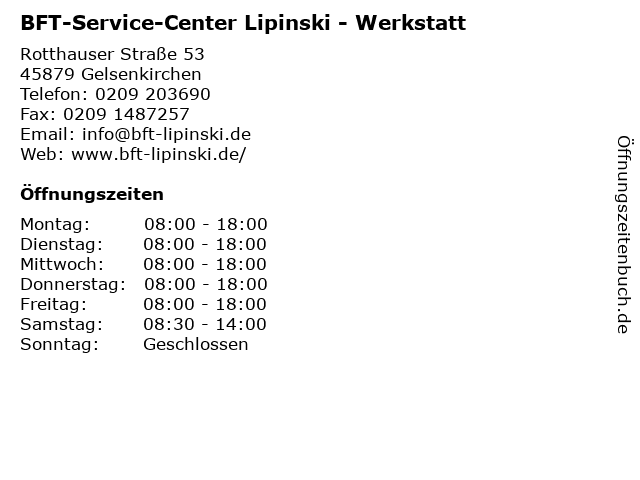 Branchen & Suchbegriffe zu BFT-Service-Center Lipinski - Werkstatt:achsvermessung, bft, bremspruefstand, center, kfz-meisterbetrieb, klimaservice, lipinski, service, unfallbeseitigung, werkstatt |