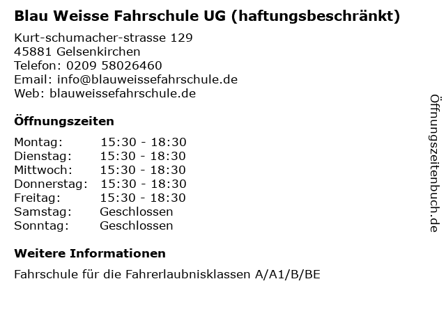 Branchen & Suchbegriffe zu Blau Weisse Fahrschule UG (haftungsbeschränkt):blau, fahrschule, haftungsbeschränkt, ug, weisse |
