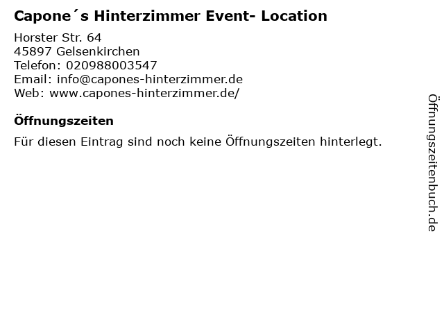 | Capone´s Hinterzimmer Event- Location anrufen | |
