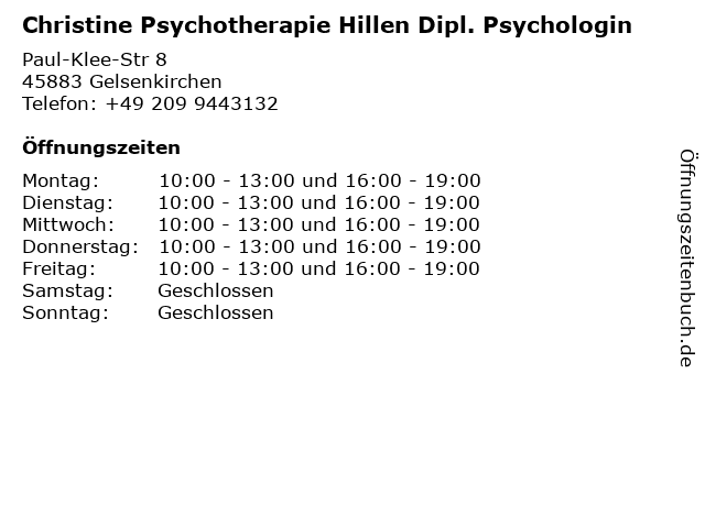 Branchen & Suchbegriffe zu Christine Psychotherapie Hillen Dipl. Psychologin:christine, dipl., hillen, psychologin, psychotherapie |