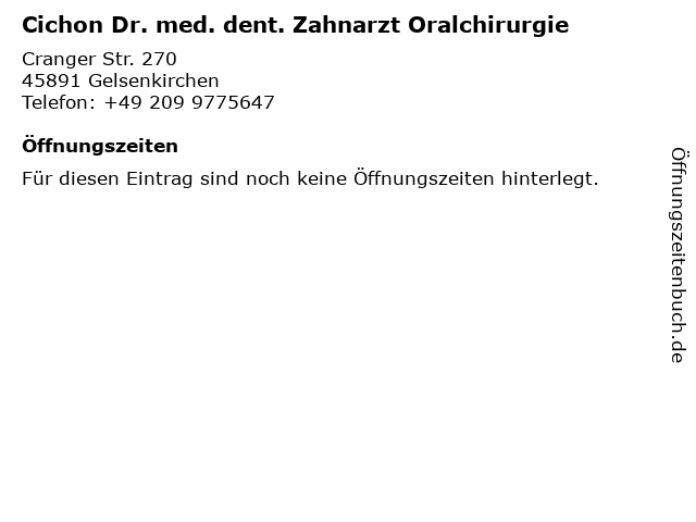 | Cichon Dr. med. dent. Zahnarzt Oralchirurgie anrufen | |