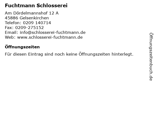 | Öffnungszeiten Fuchtmann Schlosserei in Gelsenkirchen anzeigen | |