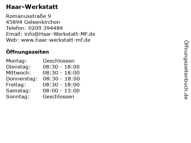 | Öffnungszeiten Haar-Werkstatt in Gelsenkirchen anzeigen | |