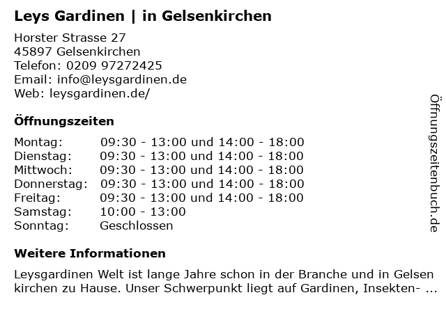 Branchen & Suchbegriffe zu Leys Gardinen | in Gelsenkirchen:gardinen, leys |