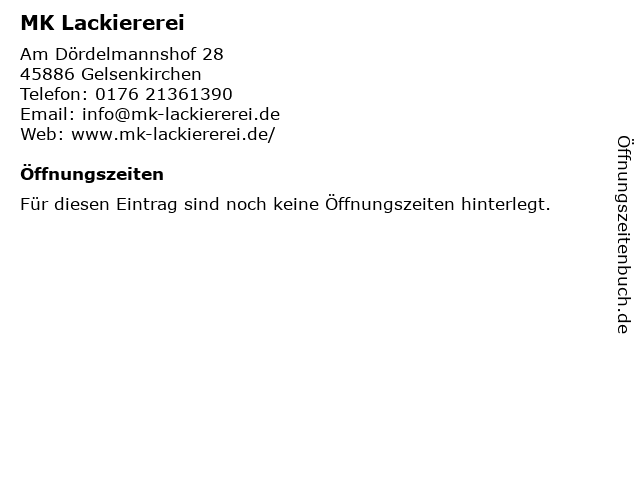 | Öffnungszeiten MK Lackiererei in Gelsenkirchen anzeigen | |
