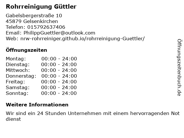 | Öffnungszeiten Rohrreinigung Güttler in Gelsenkirchen anzeigen | |