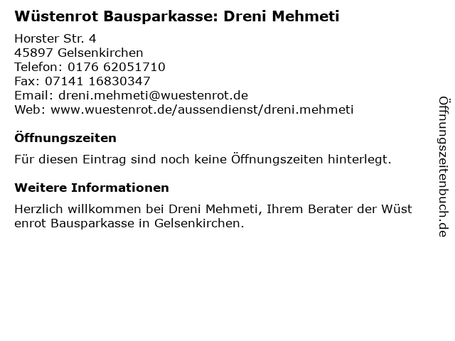 | Wüstenrot Bausparkasse: Dreni Mehmeti anrufen | |