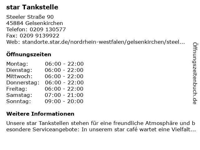 | Öffnungszeiten star Tankstelle in Gelsenkirchen anzeigen | |