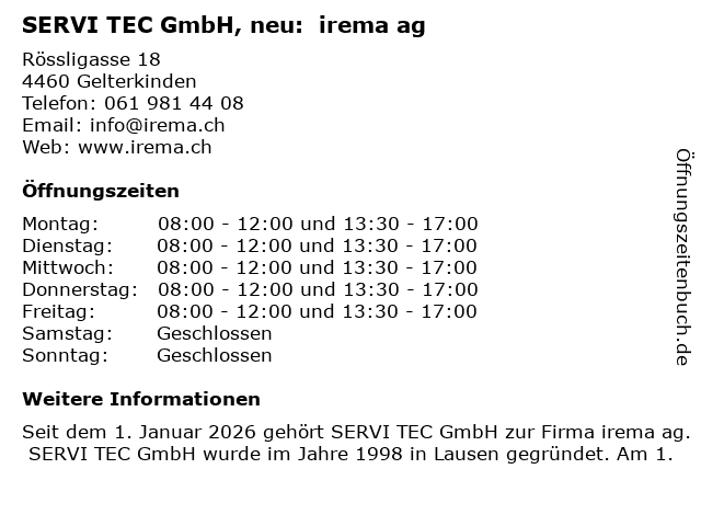 Branchen & Suchbegriffe zu SERVI TEC GmbH, neu: irema ag:gerätereparaturdienst, geschäft für kühlschränke, irema, küchenbedarf, neu, servi, tec |