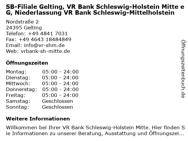 Branchen & Suchbegriffe zu SB-Filiale Gelting, VR Bank Schleswig-Holstein Mitte eG, Niederlassung VR Bank Schleswig-Mittelholstein:bank, eg, gelting, holstein, mitte, mittelholstein, niederlassung, sb, vr |