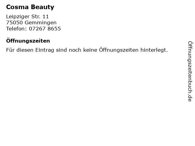 | Öffnungszeiten Cosma Beauty in Gemmingen anzeigen | |
