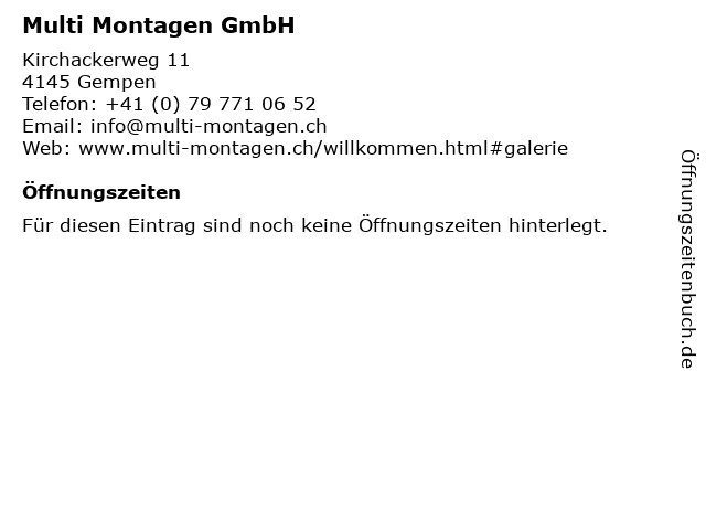 | Öffnungszeiten Multi Montagen GmbH in Gempen anzeigen | |