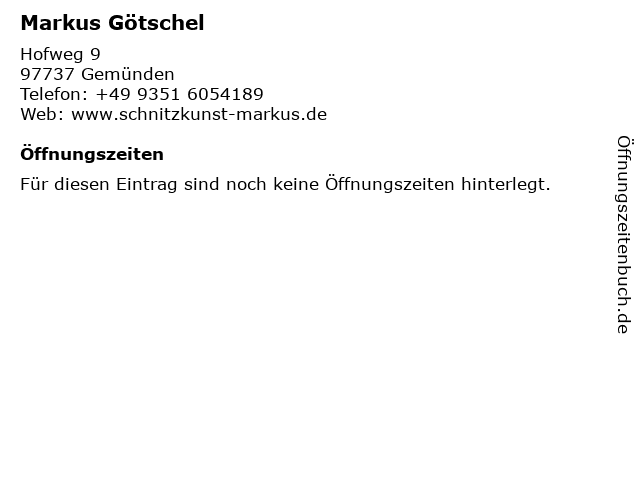 | Öffnungszeiten Markus Götschel in Gemünden anzeigen | |