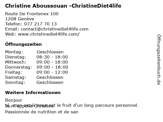 Branchen & Suchbegriffe zu Christine Aboussouan -ChristineDiet4life:aboussouan, christine, christinediet4life, pflanzenheilkunde |