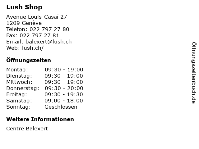 | Öffnungszeiten Lush Shop in Genève anzeigen | |