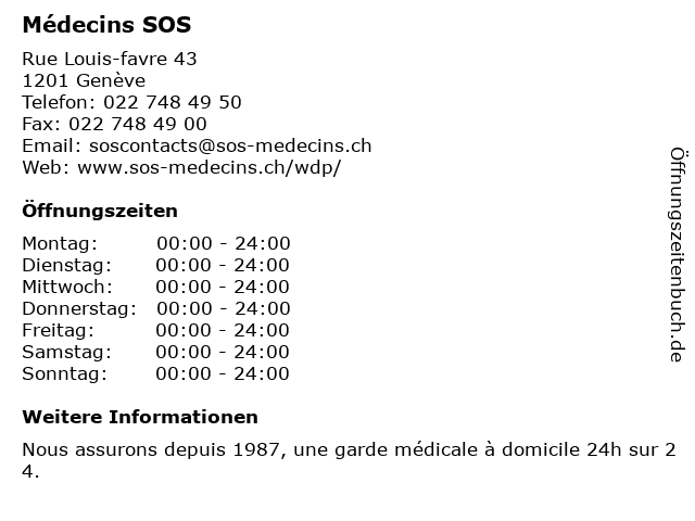 | Öffnungszeiten Médecins SOS in Genève anzeigen | |