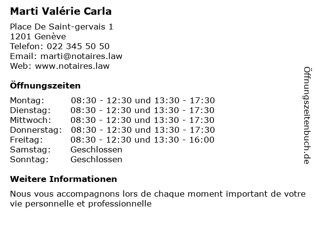 | Öffnungszeiten Marti Valérie Carla in Genève anzeigen | |