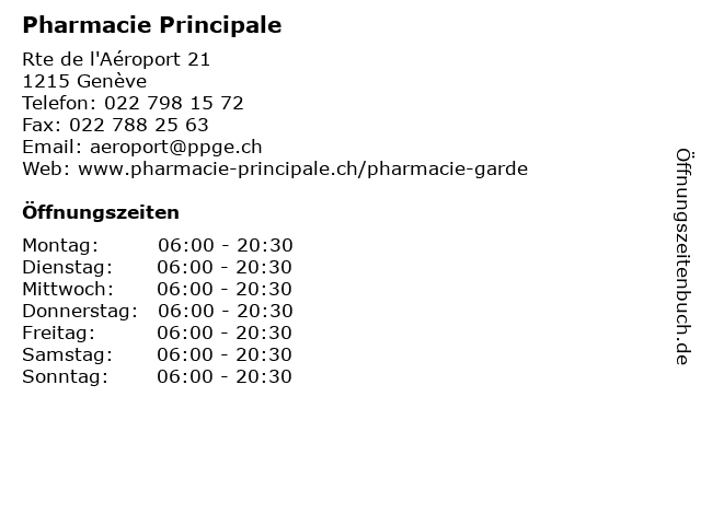 | Öffnungszeiten Pharmacie Principale in Genève anzeigen | |