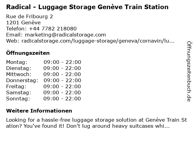 Branchen & Suchbegriffe zu Radical - Luggage Storage Genève Train Station:genève, luggage, luggage storage, luggage storage near me, radical, station, storage, train |