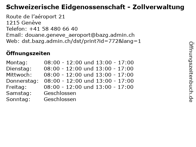 1 Schweizerische Eidgenossenschaft - Zollverwaltung (Entfernung: 0,65 km) Avenue Louis-Casai 84, 1216 Cointrin 2 Schweizerische Eidgenossenschaft - Zollverwaltung (Entfernung: 0,77 km) Rte François-Peyrot 28, 1218 Le Grand-Saconnex 3 Schweizerische Eidgenossenschaft - Zollverwaltung (Entfernung: 0,99 km) Voie des Traz 18, 1218 Le Grand-Saconnex 4 Schweizerische Eidgenossenschaft - Zollverwaltung (Entfernung: 4,51 km) Route de Meyrin 399, 1217 Meyrin 5 Schweizerische Eidgenossenschaft - Zollverwaltung (Entfernung: 5,06 km) Route du Grand-Lancy 6a, 1227 Les Acacias 6 Schweizerische Eidgenossenschaft - Zollverwaltung (Entfernung: 8,58 km) Route Blanche 24, 1226 Thônex |