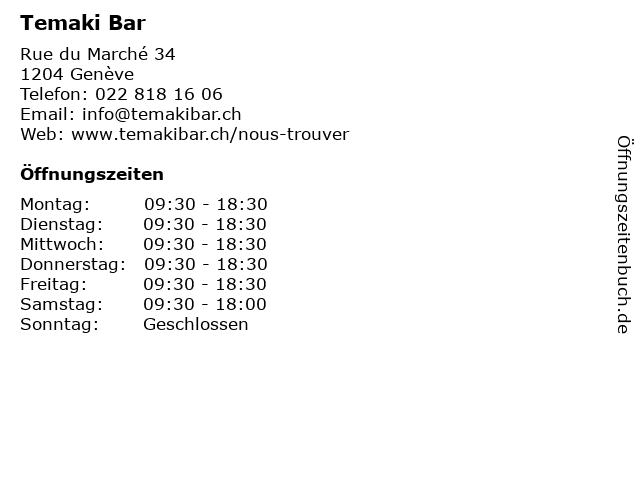 | Öffnungszeiten Temaki Bar in Genève anzeigen | |
