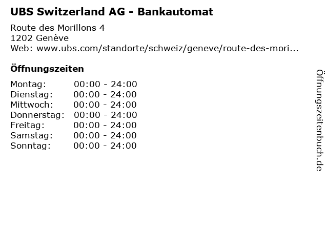 | Öffnungszeiten UBS Switzerland AG - Bankautomat in Genève anzeigen | |